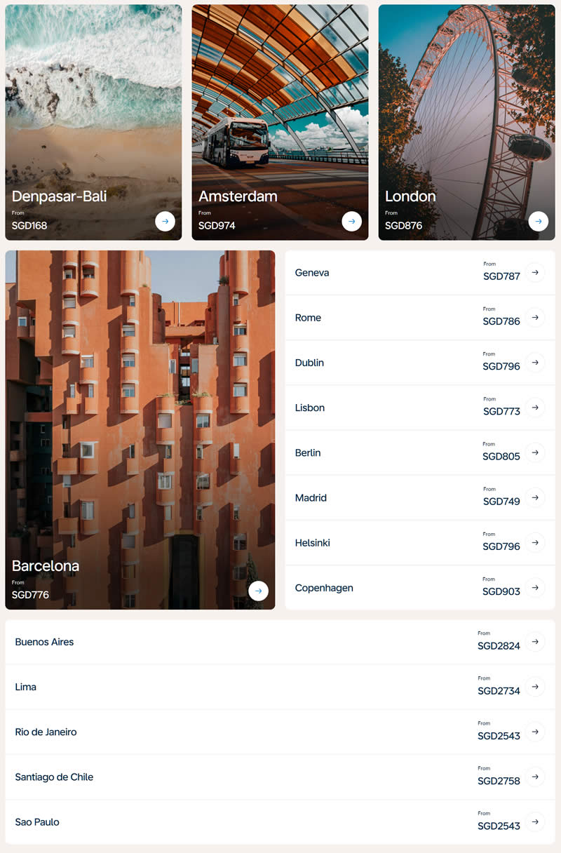 *All-in return Economy, Premium Comfort & Business class (Light) fares for departure from Singapore. Minimum stay: 6 days. Maximum stay: 3 months. Advance purchase of 14 days is required for Business class. Book by 02 February 2026 for travel by 04 December 2026. Change of dates is permitted with additional fees. Non-refundable. Other terms and conditions apply.
