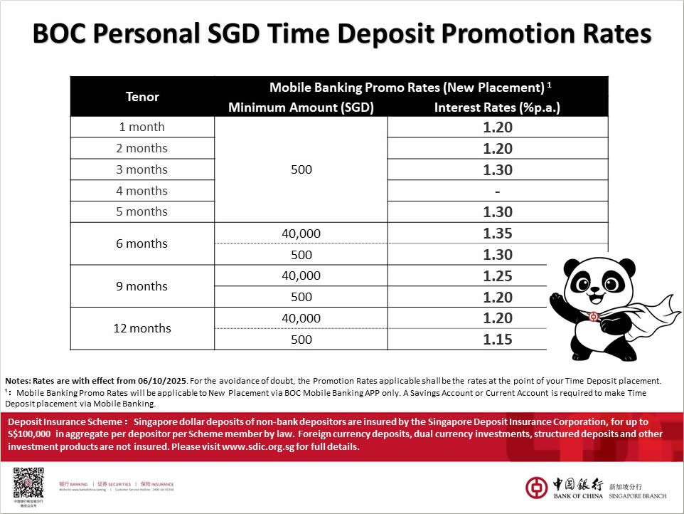 Disclaimer: All information is accurate as of 6 Oct 2025 and subject to change. Customers should verify the latest rates and terms directly with Bank of China (Singapore).