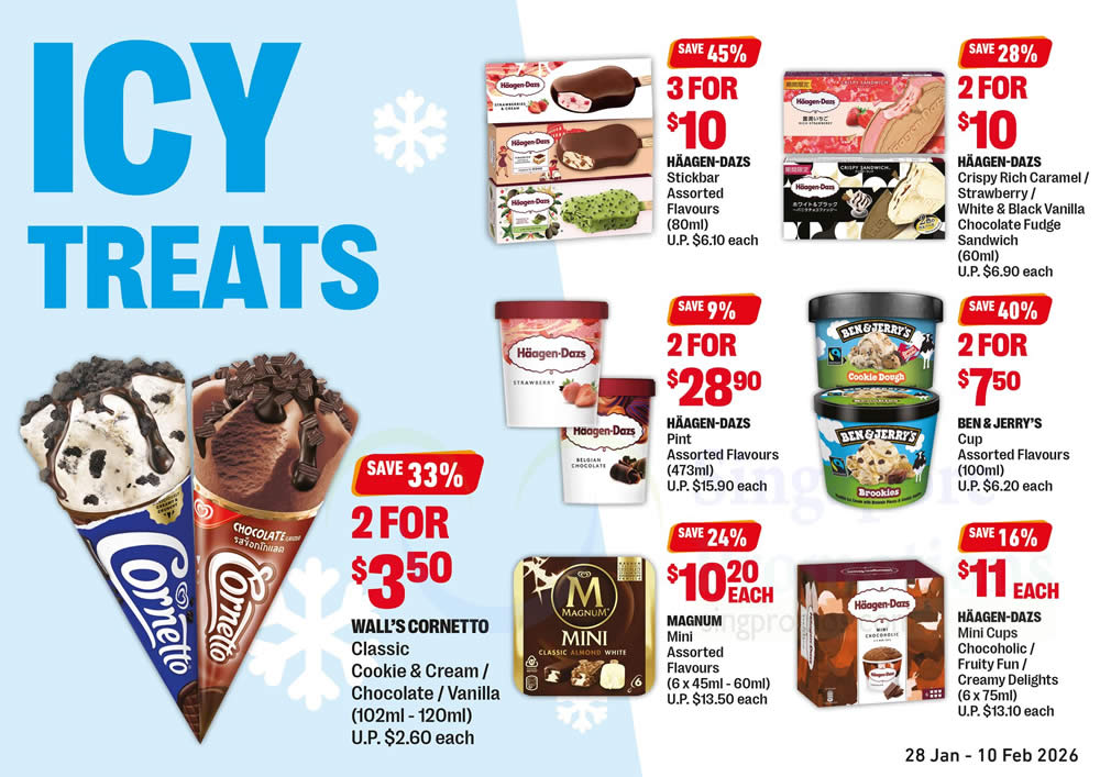 From premium tubs to convenient single-serve cups and bars, shoppers can enjoy discounts of up to 45% off on well-loved brands like Häagen-Dazs, Ben & Jerry’s, Magnum and Wall’s Cornetto. These promos are great for sharing, solo treats, or stocking up the freezer.