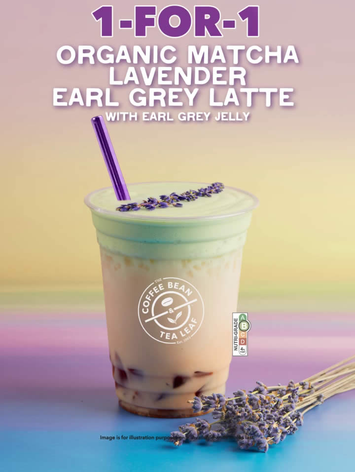 This 1-for-1 deal offers a great opportunity to explore a creative and aromatic beverage at excellent value. With its floral notes, tea richness and chewy jelly texture, the Organic Matcha Lavender Earl Grey Latte delivers a refreshing twist worth trying before the promotion ends.