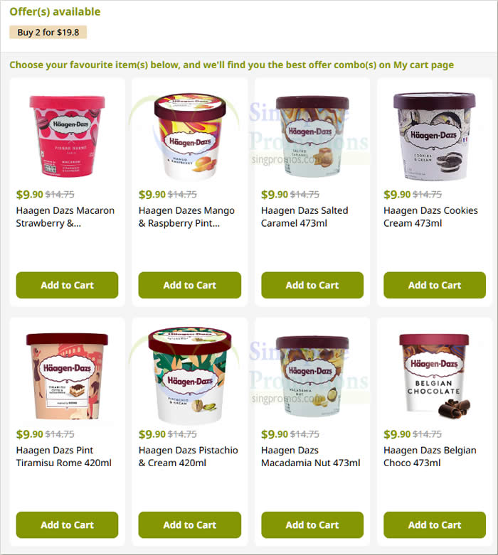 The star of this week’s lineup is undoubtedly the Haagen-Dazs ice cream tubs (473ml). Available at just S$19.80 for any 2 tubs (U.P. S$29.50), shoppers save an impressive S$9.70. This works out to S$9.90 per tub, making it the perfect time to indulge in crowd favourites like Macadamia Nut, Belgian Chocolate, or Vanilla.