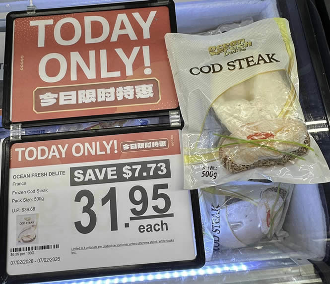- Ocean Fresh Delite Frozen Cod Steak 500g – Usual Price: $39.68 | Save $7.73 (19%) | Offer: $31.95 per pack π
