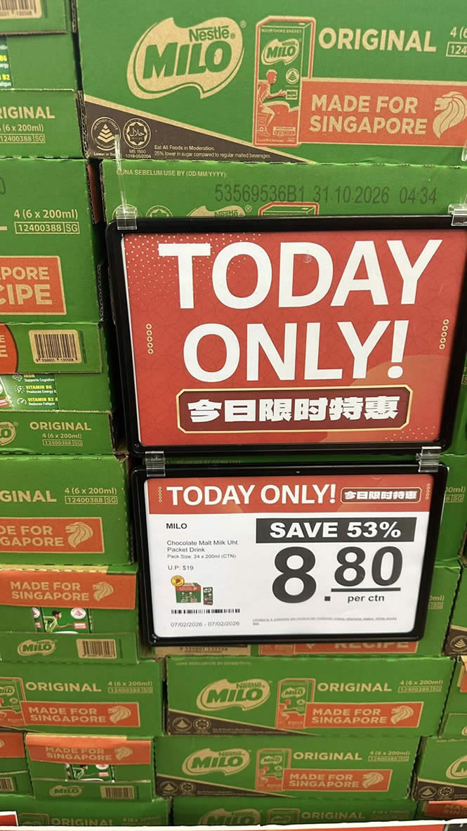 - MILO Activ-Go UHT Multipack (4 x 6s x 200ml) – Usual Price: $19.00 | Save $10.20 (53%) | Offer: