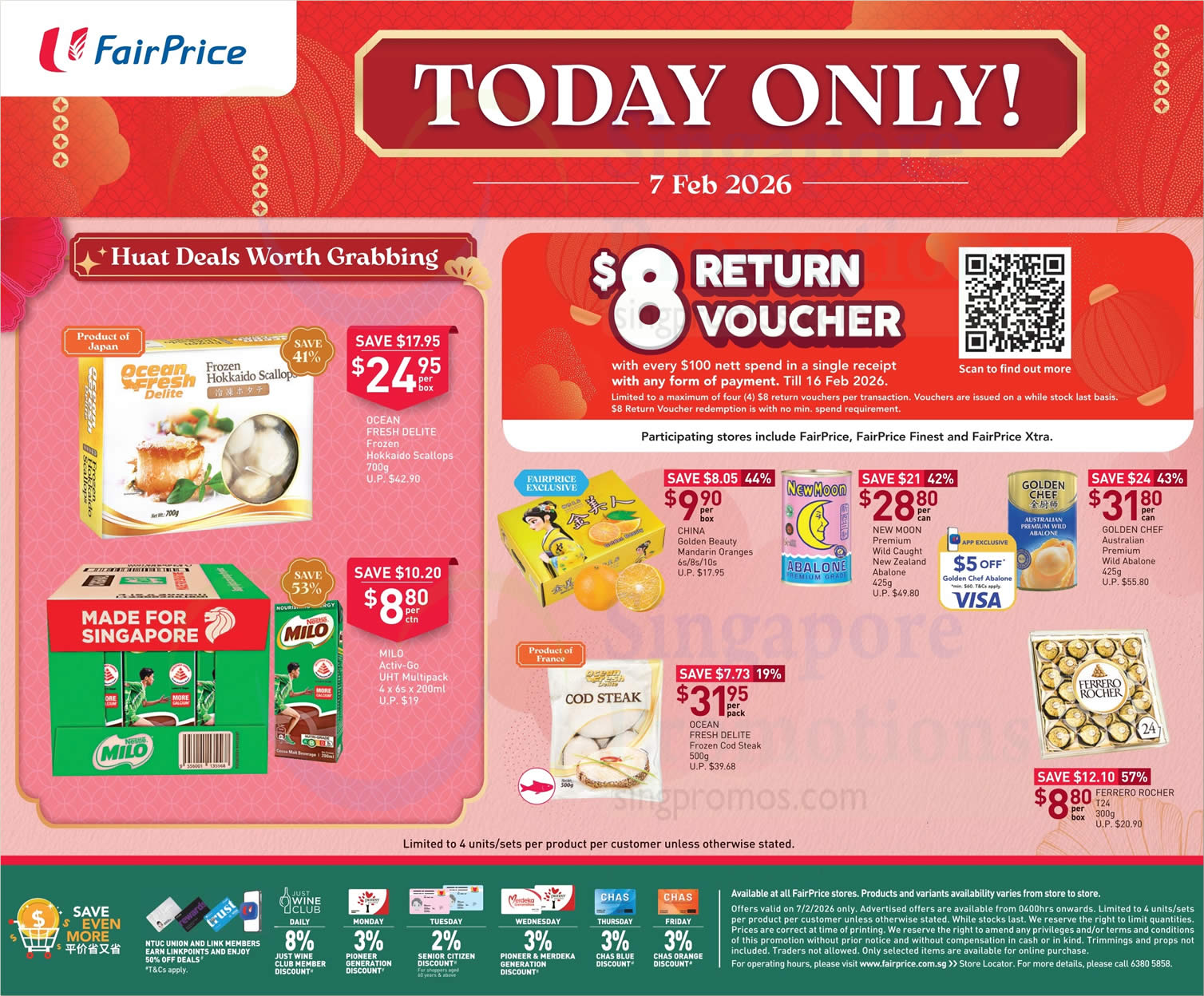 Update 8 Feb: FairPrice ONE-Day Deals on 8 Feb 2026 Has Golden Chef, New Moon, Porkee, Seaco & More