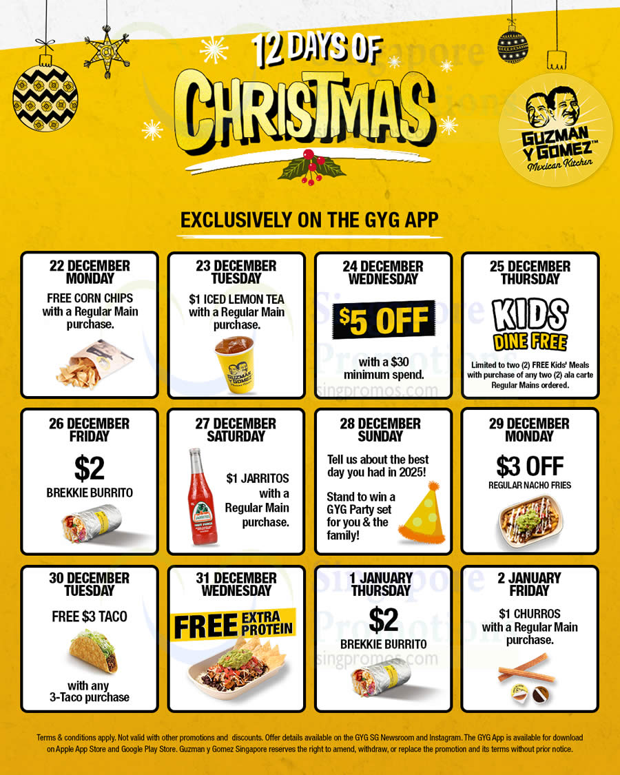 From breakfast burrito bargains to kid-friendly dining perks and New Year fuel, this festive countdown is all about sharing the love, GYG-style. 💛🌮