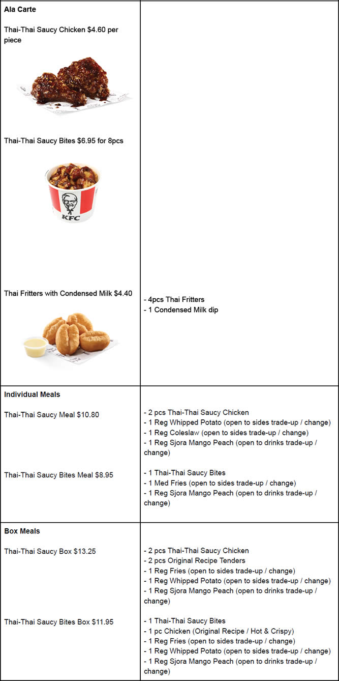 KFC’s Thai-Thai Saucy Chicken Price List
