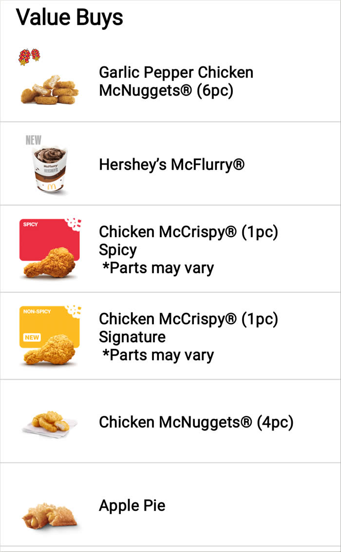 Add-on value buys such as Chicken McNuggets®, Chicken McCrispy®, Apple Pie and other crowd favourites, perfect for turning a dessert run into a fuller snack stop.