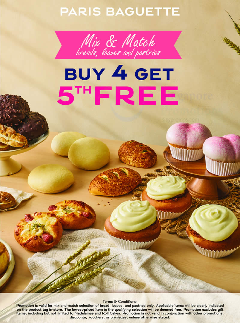 Paris Baguette is rolling out a tempting Buy 4, Get the 5th Free mix-and-match promotion on selected breads, loaves and pastries across its Singapore outlets from 1 February 2026.