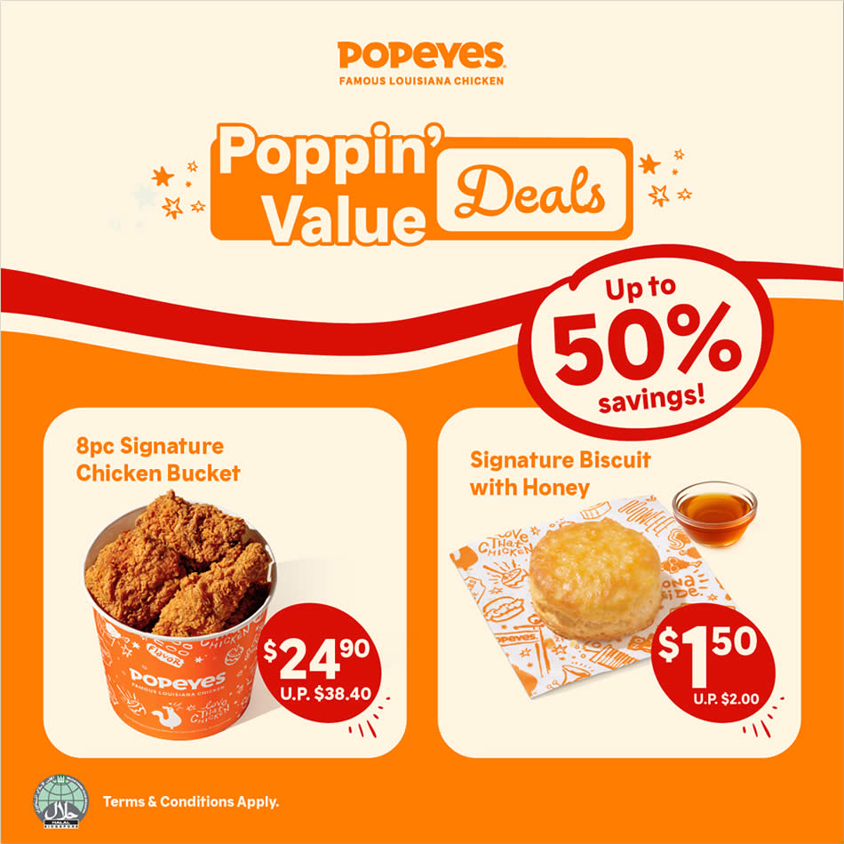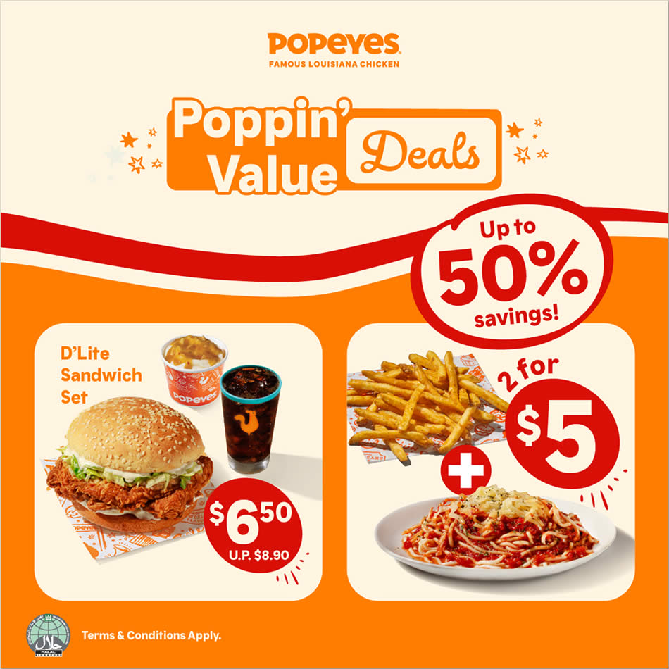 Popeyes SG Oct 2025 Poppin’ Value Deals Offers Up to 50% Off Until 31 Oct 2025
