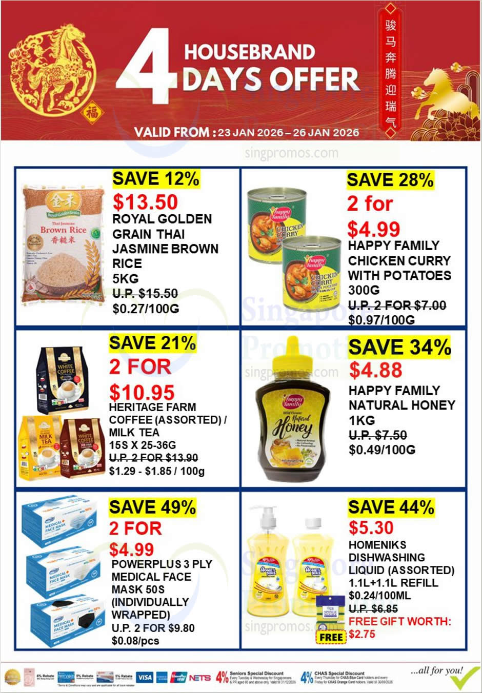 More Ways to Save – Extended Senior & CHAS Discounts in 2026. - 4% CHAS discounts: CHAS Blue Card (Thursdays) and CHAS Orange Card (Fridays), valid till 30 June 2026 (terms apply). Refer to the same official update above.