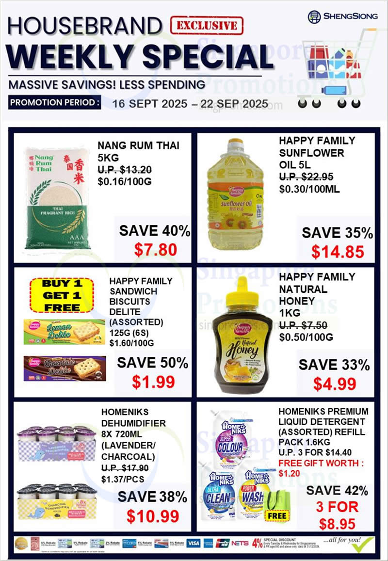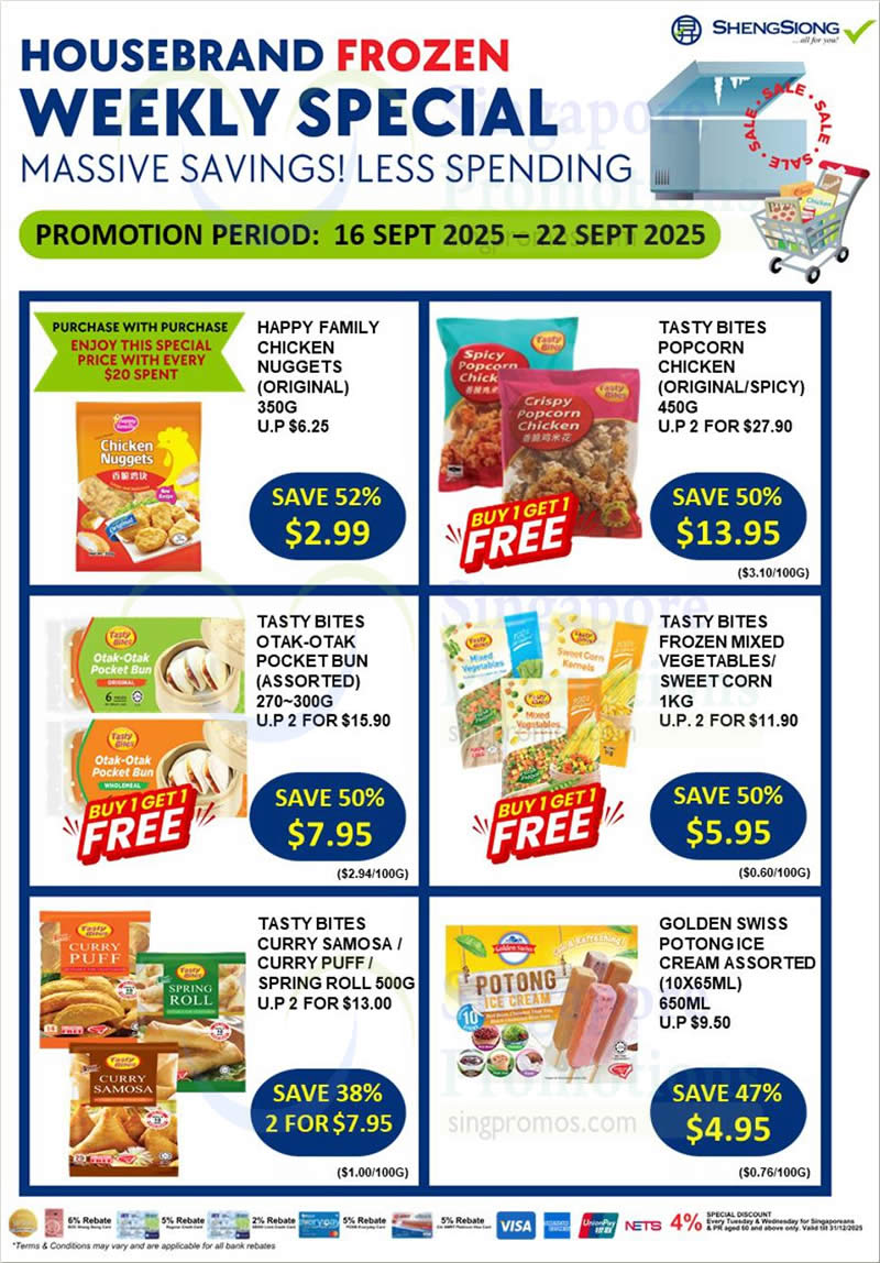 From 16 September 2025 to 22 September 2025, Sheng Siong is bringing customers massive savings on a wide range of housebrand frozen foods and essential household products.