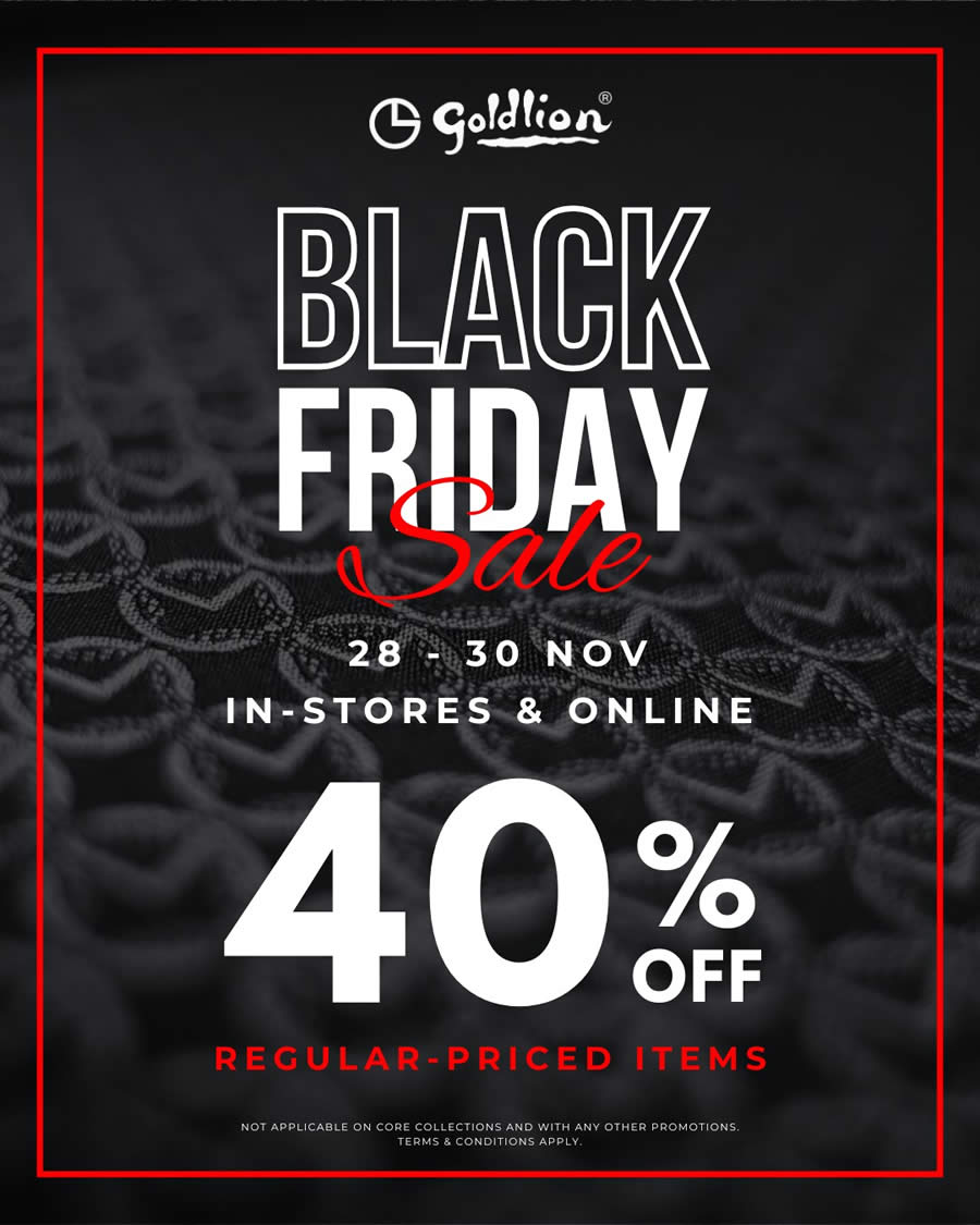 Goldlion’s Black Friday Sale offersshoppers an attractive 40% off regular-priced items across its boutiques, selected department stores, and online store.