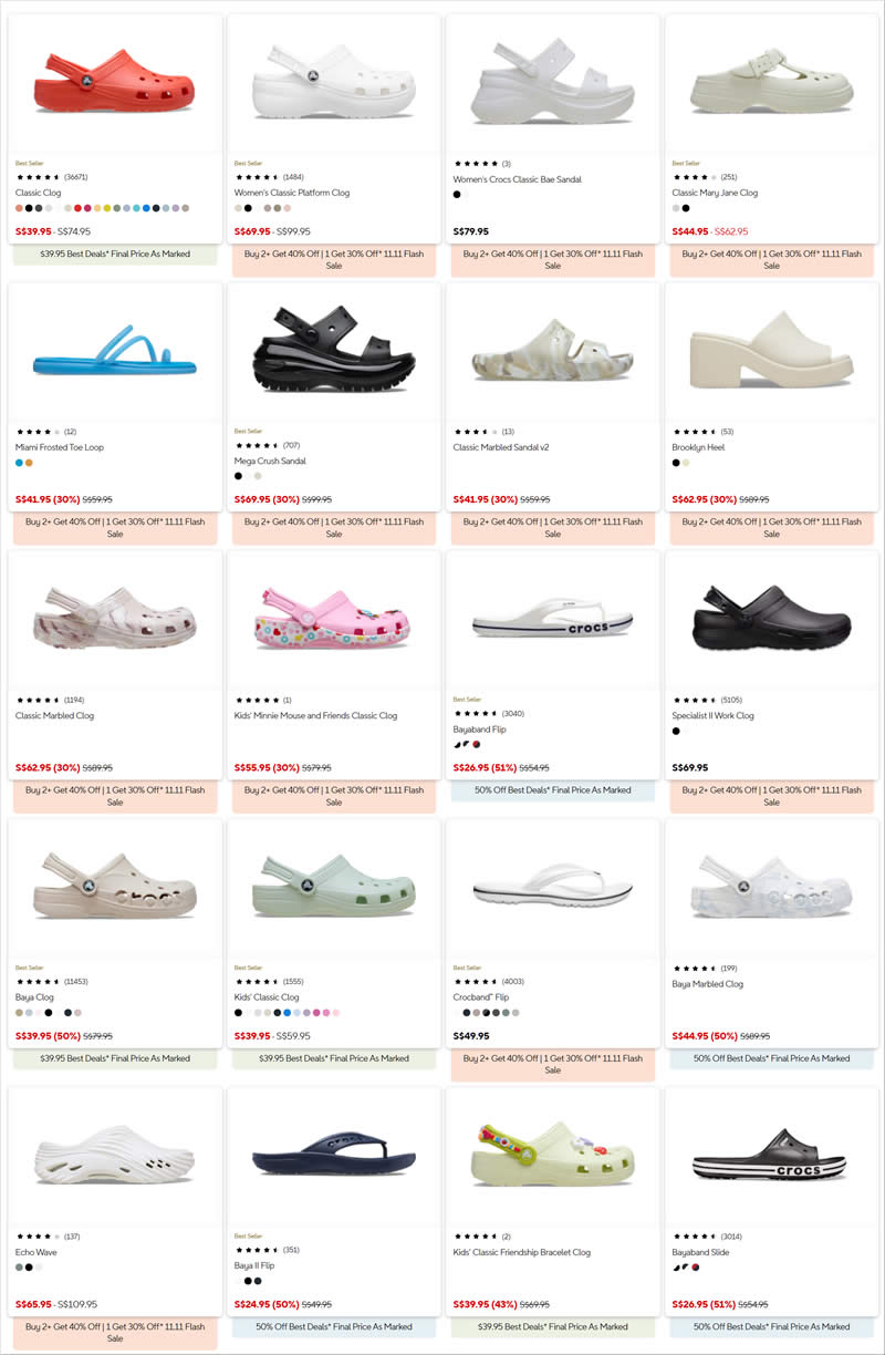 Head over to www.crocs.com.sg to explore the full collection and enjoy extra perks like $39.95 footwear doorbusters and $11 Jibbitzโข Packs – all part of the 11.11 Flash Sale celebration.