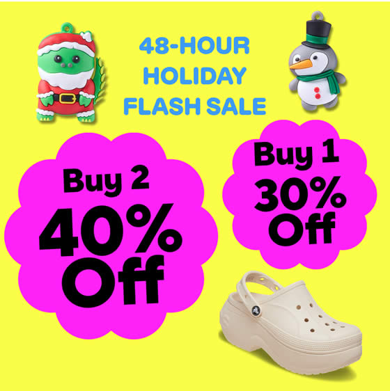 Crocs Singapore is running a time-limited online flash sale at www.crocs.com.sg that rewards shoppers with bigger savings when they buy more. For a short 48-hour window, customers can enjoy 40% off when purchasing 2 or more pairs, or 30% off with the purchase of just 1 pair.*Exclusions apply. Discounts are automatically applied at cart.