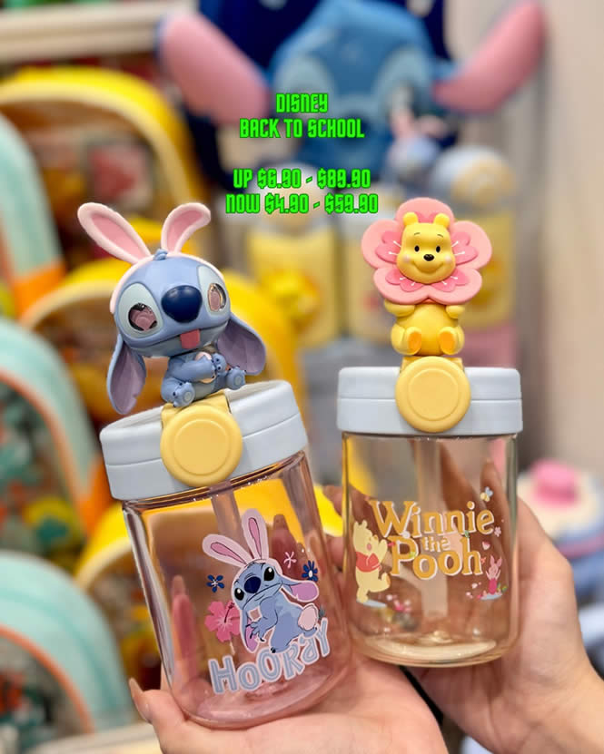 Cute themed bottles featuring Stitch, Winnie the Pooh and more.