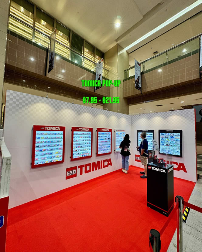 A full showcase of Tomica die-cast cars – great for young car fans and collectors.