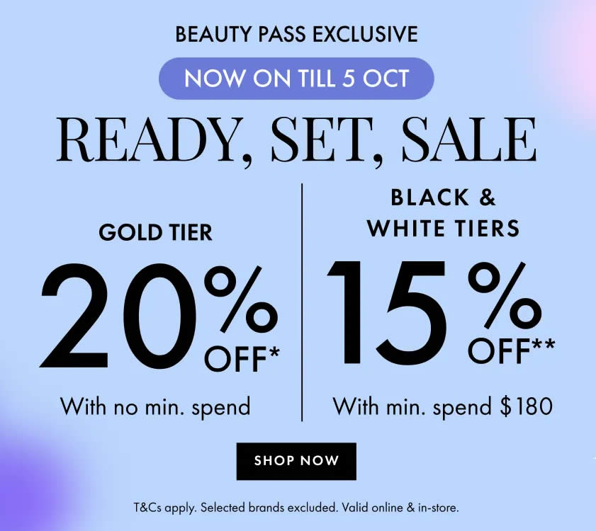 - Gold Tier members – Enjoy 20% off with no minimum spend. Perfect for a guilt-free spree on your go-to favourites or to experiment with new launches 🎉.