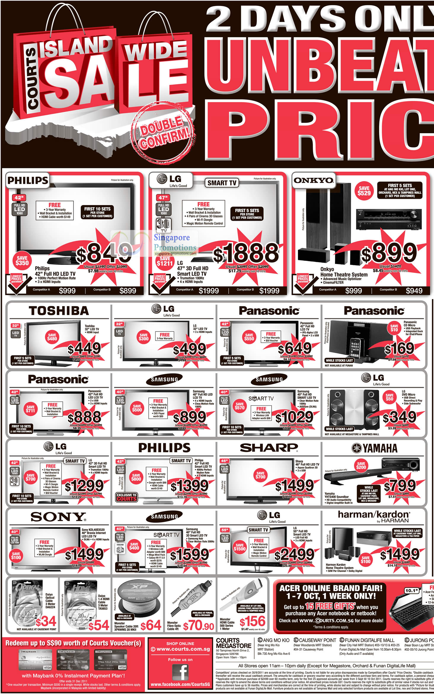 Courts Islandwide Sale Special Offers 1 Oct 2011 TV, Yamaha YHTS400 Soundbar, Sony KDL-40EX520