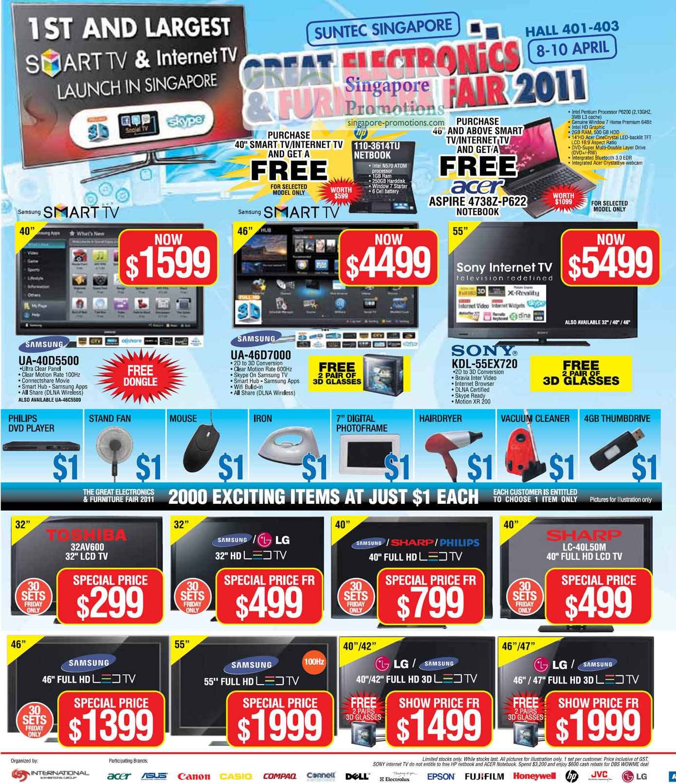 Great Electronics & Furniture Fair 2011 8 - 10 Apr 2011 8 Apr HP 110-3614TU, Acer Aspire 4738Z-P622, Samsung UA 40D5500, 46D7000, Sony KDL-55EX720
