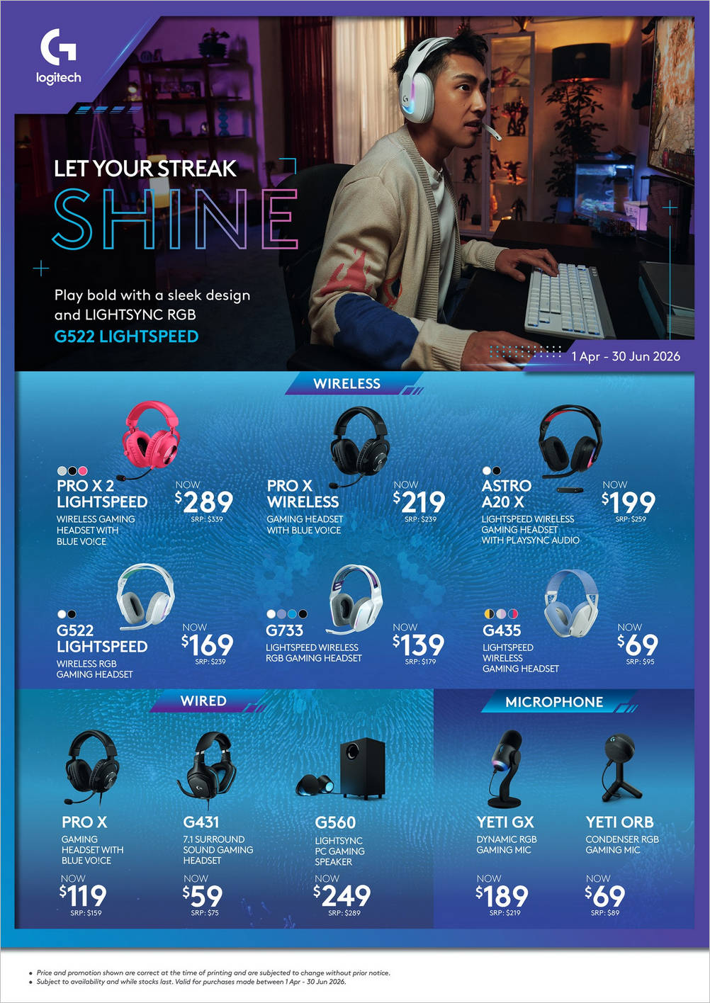 Running from 1 Apr 2026 to 30 Jun 2026, this campaign covers everything from pro-level headsets to ergonomic mice and powerful speakers.