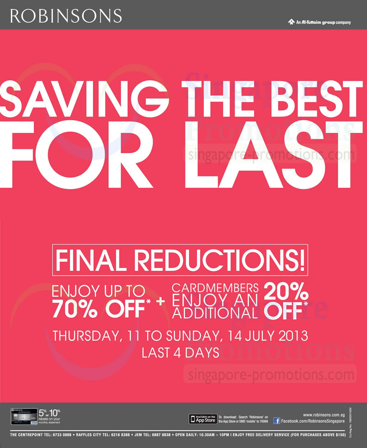 Robinsons Final Reductions Offers Up To 70% Off 11 - 14 Jul 2013 Robinsons 8 Jul 2013