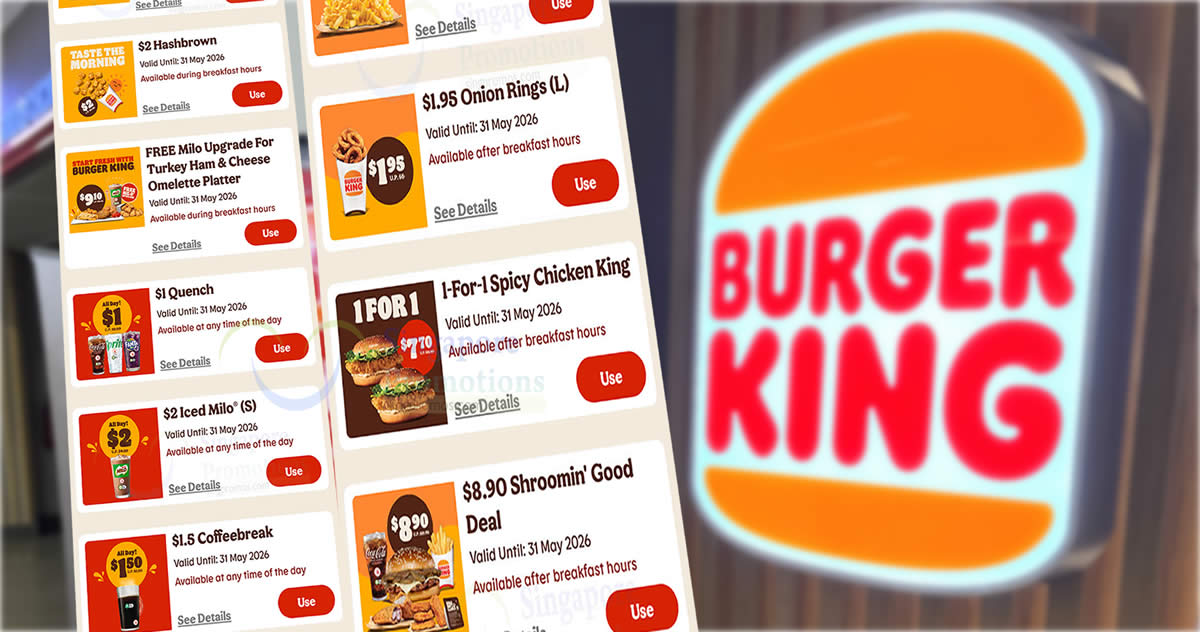 - Burger King S’pore Launches 20 New E-Coupons Offering Up to 61% Off Till 5 Apr 2026
