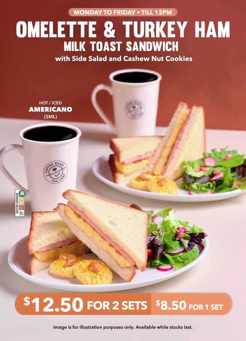 If you’re looking for a reliable, filling and affordable weekday breakfast, Coffee Bean SG’s Omelette & Turkey Ham Milk Toast Sandwich set ticks all the right boxes. With coffee, sides and flexible hot or iced options included, it’s a convenient morning win that doesn’t hurt the wallet.