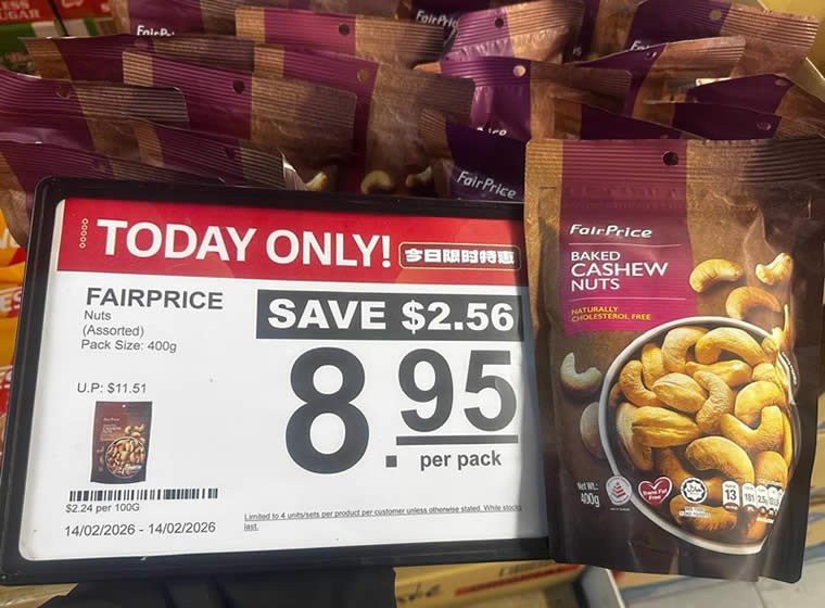 - FAIRPRICE Nuts Assorted 400g – $8.95 per pack (U.P. $11.51) | Save $2.56 (22%)