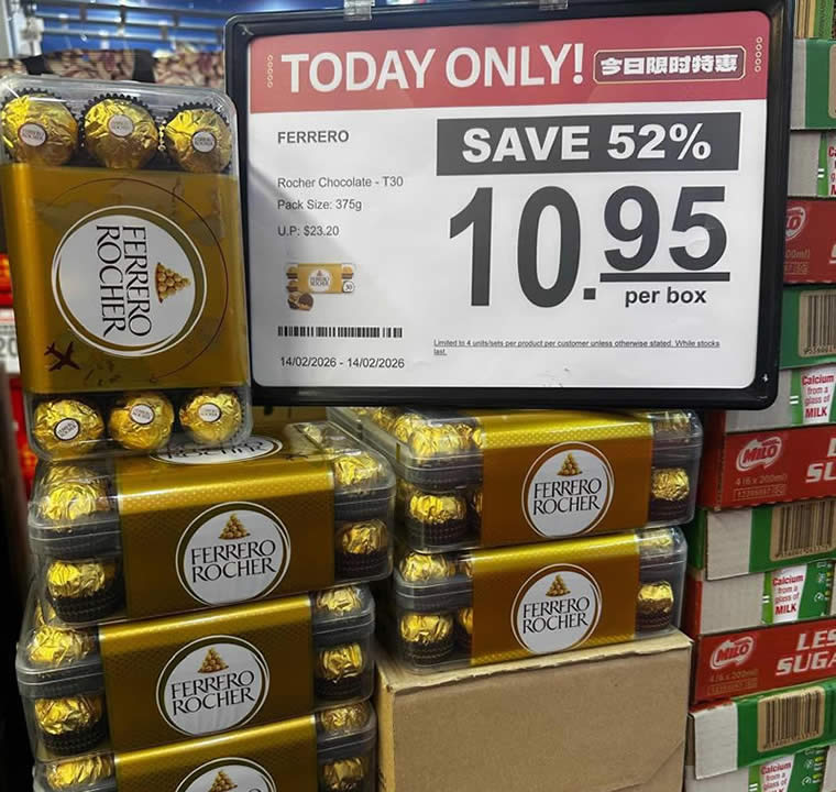 - Ferrero Rocher T30 375g – $10.95 per box (U.P. $23.20) | Save $12.25 (52%)