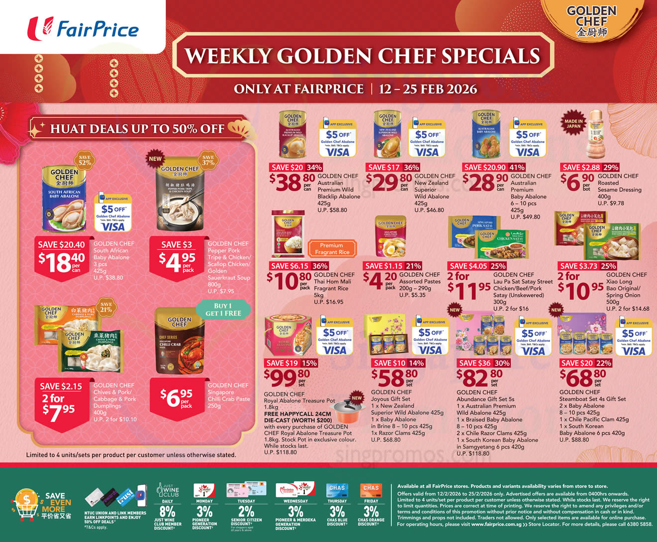FairPrice Golden Chef Weekly Specials are here from 12 Feb 2026 to 25 Feb 2026, bringing hearty savings of up to 50% off across abalone, premium rice, dim sum, sauces and festive gift sets 🎉🧧.