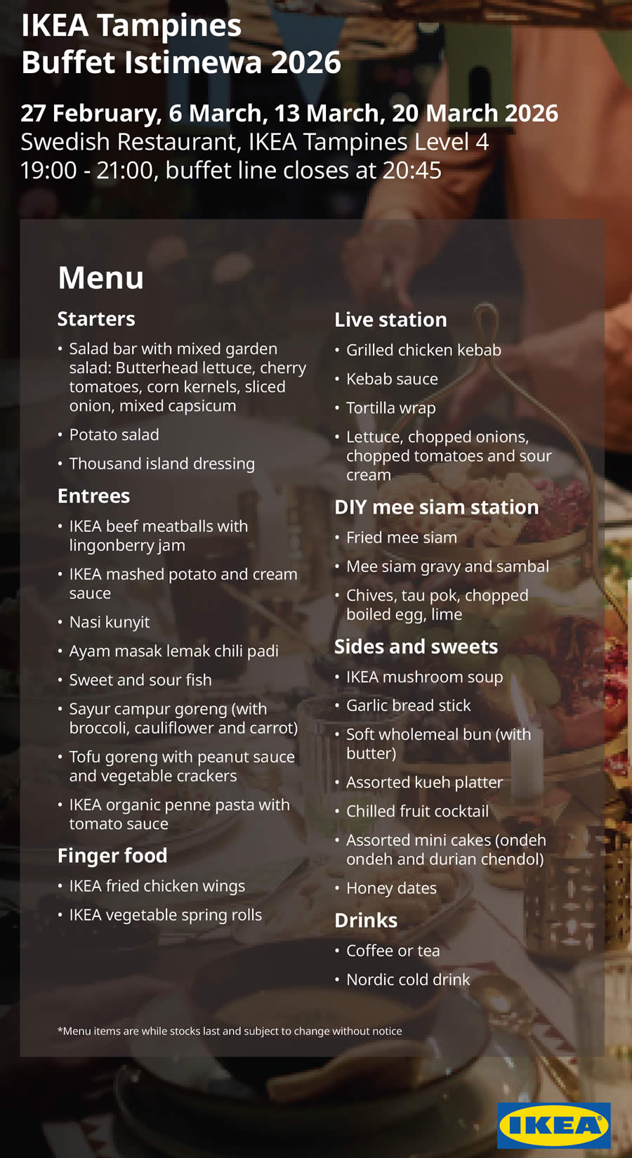 - Buffet Istimewa 2026 is available only on the stated dates at IKEA Tampines.