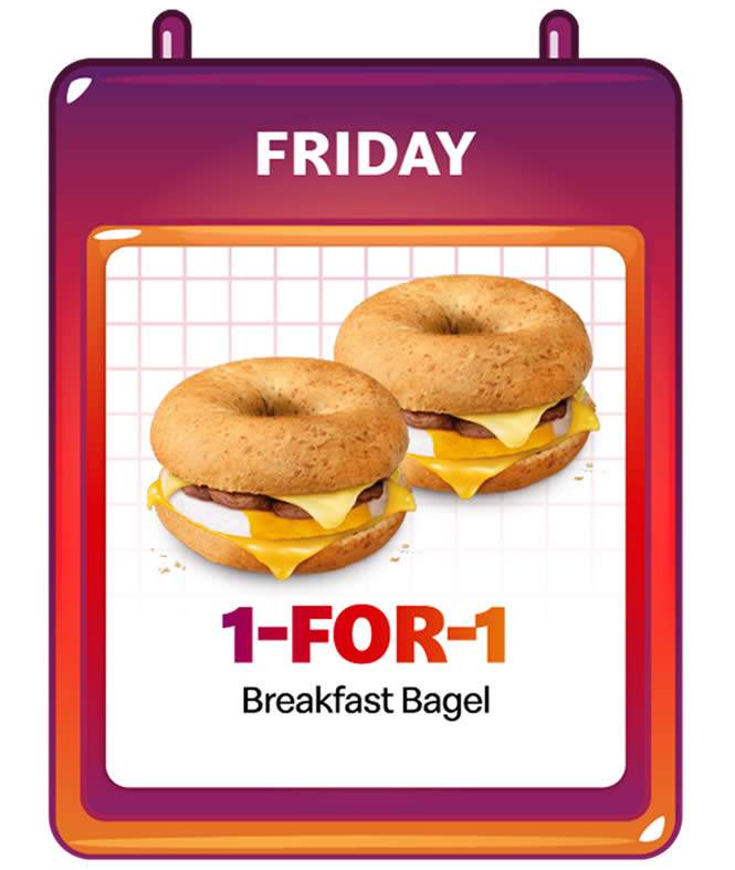 - Locate the 1-for-1 Breakfast Bagel deal under the promotions or deals section