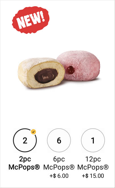 The McPops™ (Choco-Hazelnut/Berry) will be available all day – at all restaurants islandwide, Drive-Thrus and via McDelivery®, foodpanda, and Deliveroo – for a limited time only, while stocks last.