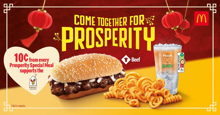 This year, when you enjoy a Prosperity Special Meal, we are doing a good cause collectively, as 10 cents from each meal goes towards RMHC Singapore. Each meal features the Prosperity Burger® served with crispy Twister Fries™ and a refreshing Peach McFizz®. It’s sure to taste good, and feel good!