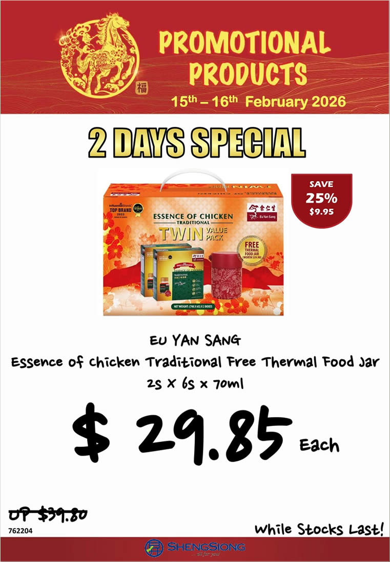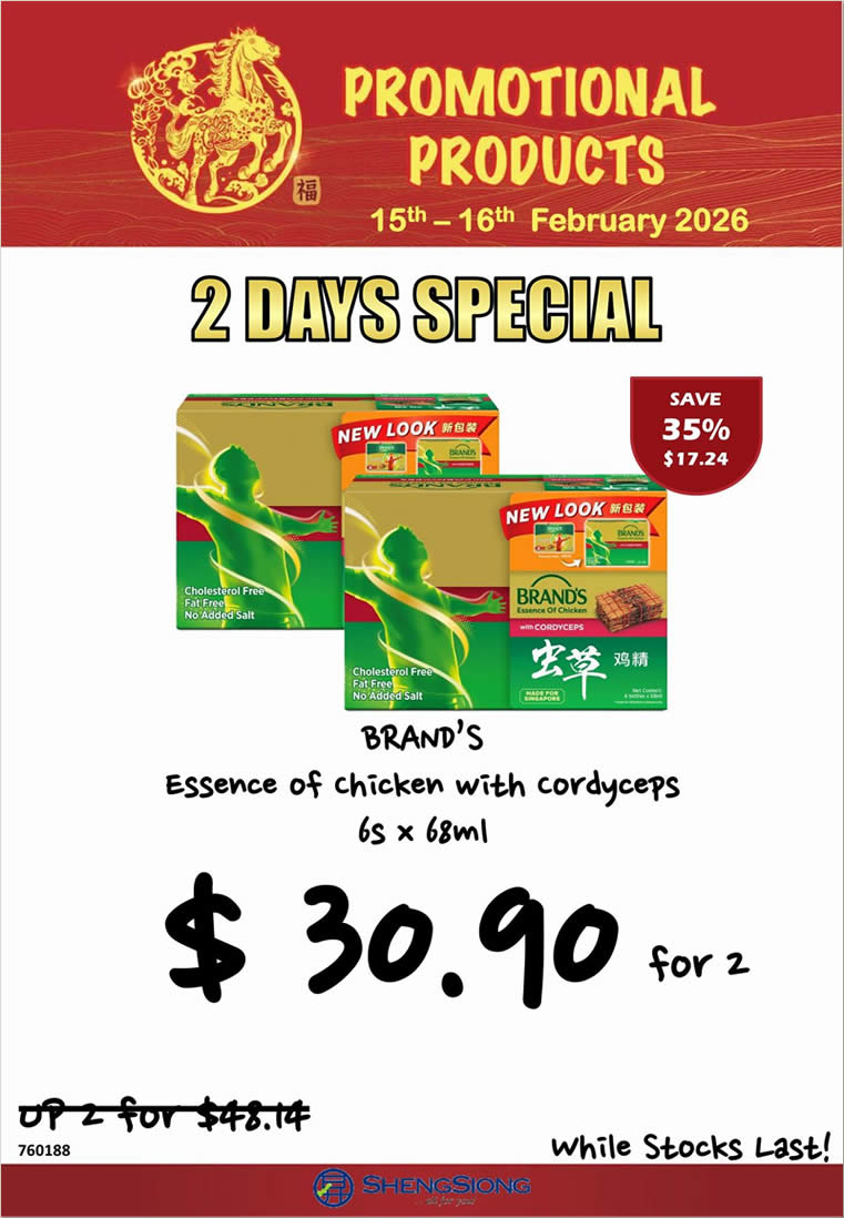 Sheng Siong 2-Day Specials are happening from 15 February 2026 to 16 February 2026, bringing attractive discounts on pantry favourites, wellness tonics and family beverage staples đĢâđ.