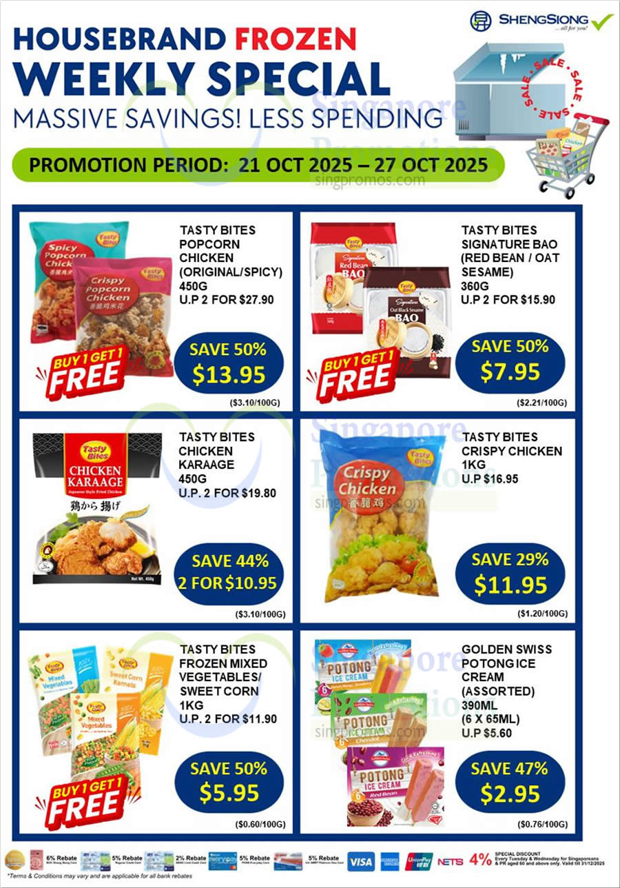 njoy up to 6% rebate with participating bank cards, and don’t forget – customers can also use CDC vouchers for even greater value on these promotions. Offers are available at Sheng Siong outlets across Singapore. Find the nearest store here.
