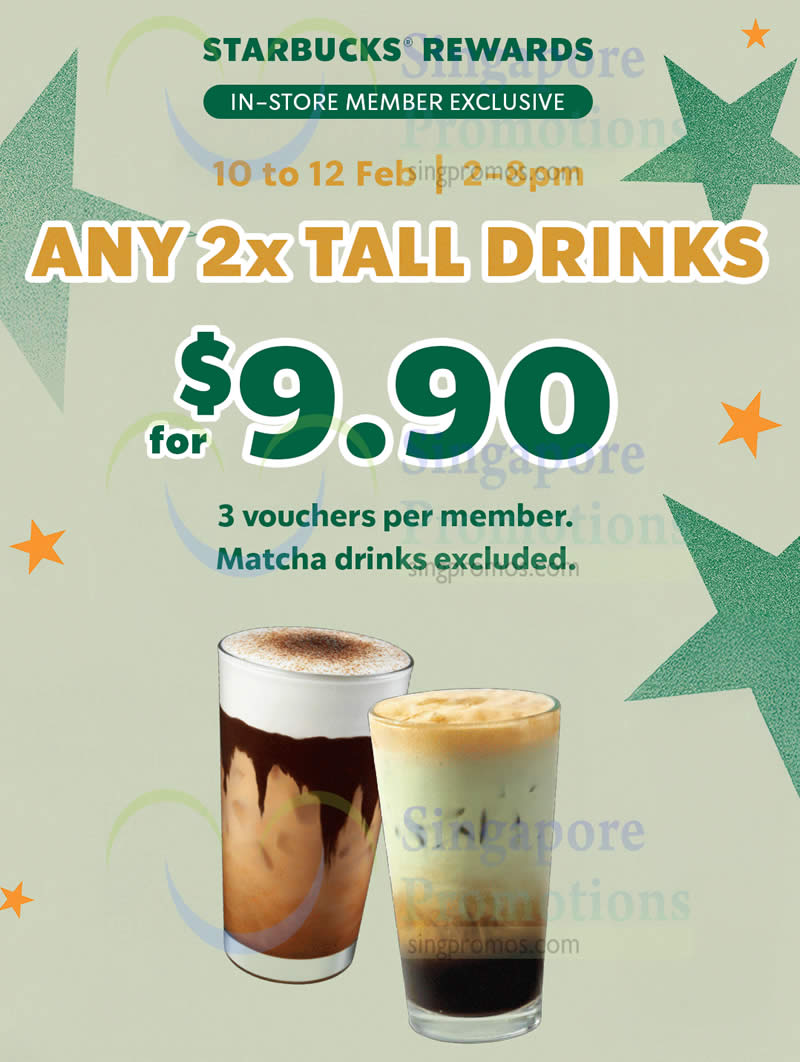 For a limited window, enjoy any 2 Tall-sized drinks for just $9.90, exclusively for members and only in stores.