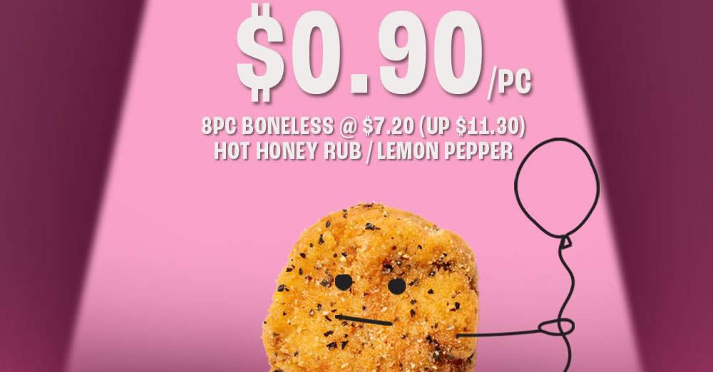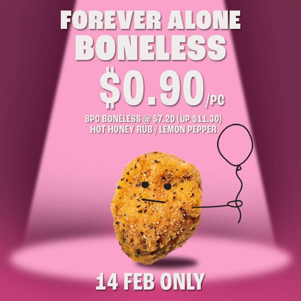 On 14 February 2026 only, enjoy 8 pieces of Boneless Wings for just $7.20 (U.P. $11.30) π That’s a juicy saving for a flavour-packed treat!