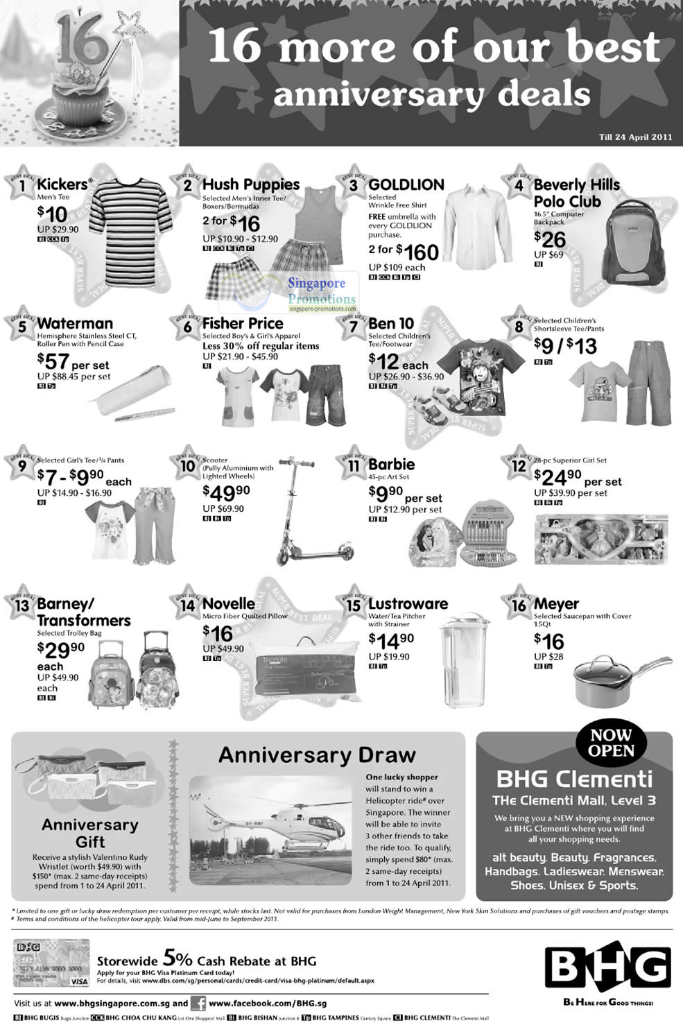 BHG Anniversary Sale 1 - 24 Apr 2011 8 Apr 16 Best Deals Kickers, Hush Puppies, Beverly Hills, Novelle, Meyer, Barney