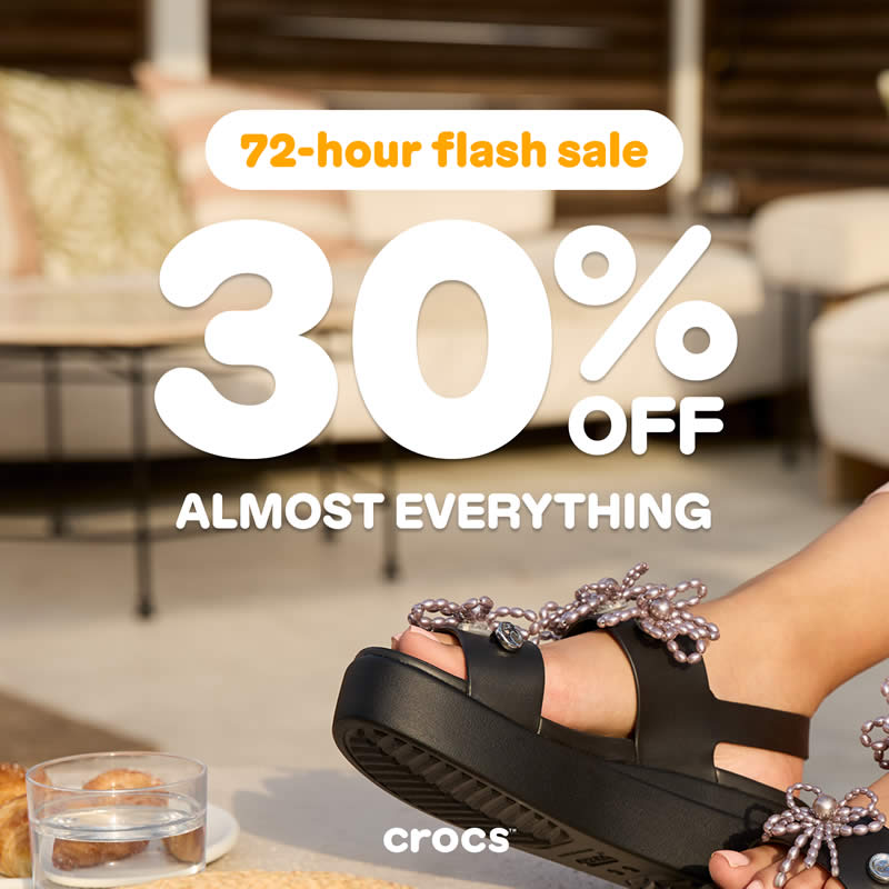 Crocs Singapore is running a 72-hour flash sale with 30% off almost everything online. This limited-time promotion brings great value across a wide range of footwear and accessories, perfect for daily wear, casual outings, or simply upgrading that comfy collection at home.