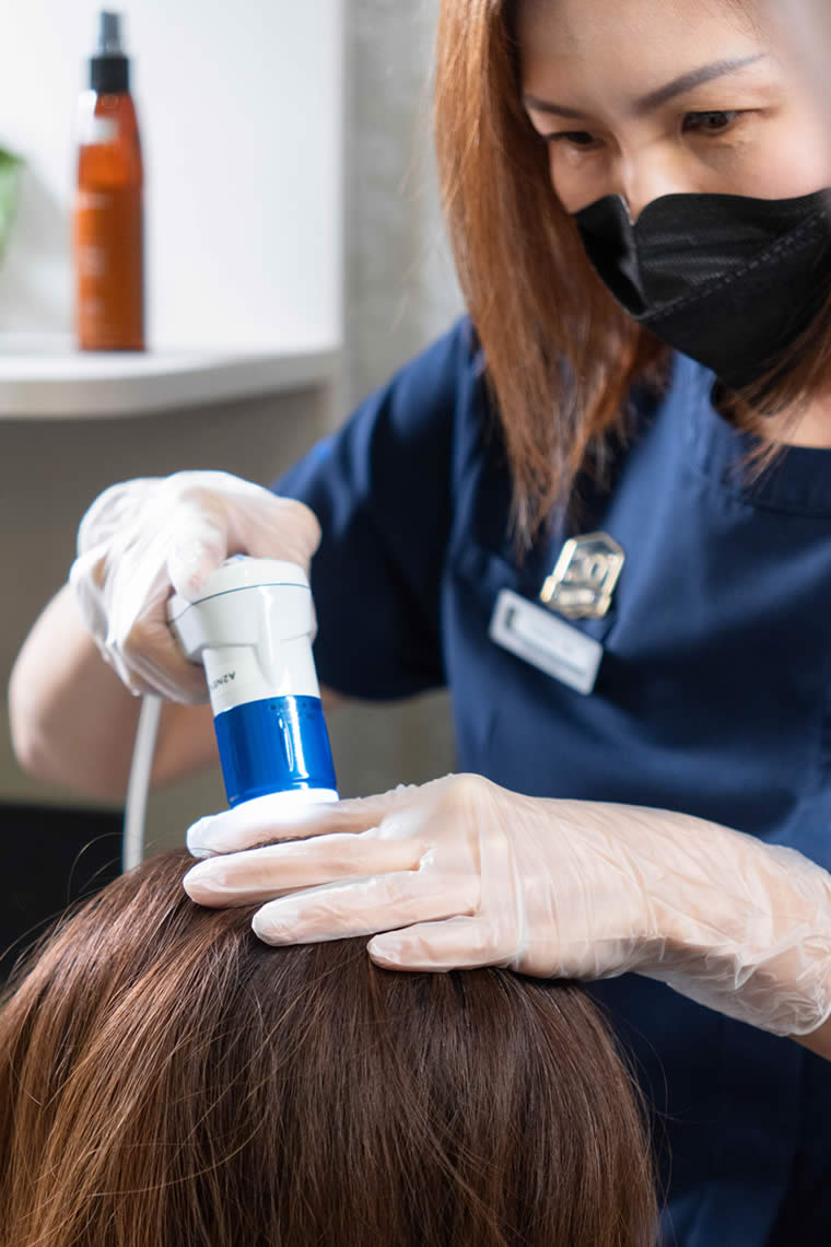 This customised in-depth scalp treatment helps to eliminate dandruff, deeply cleanse clogged scalp pores, and rebalance the scalp environment for healthier hair growth.