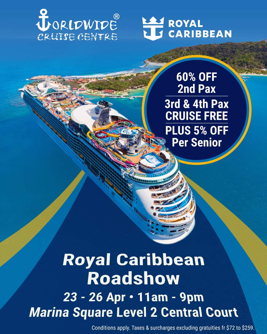 A Chan Brothers Worldwide Cruise Centre x Royal Caribbean Roadshow will be held at Marina Square, Level 2 Central Court from 23 to 26 April 2026, 11am to 9pm. From weekend sailings out of Singapore to selected fly-cruise adventures, the roadshow spotlights cruise options and limited-time offers for different kinds of travellers ๐โจ