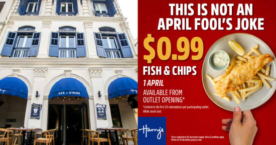 Harry’s $0.99 Fish & Chips deal at selected outlets on 1 April 2026 (Not an April Fool’s)