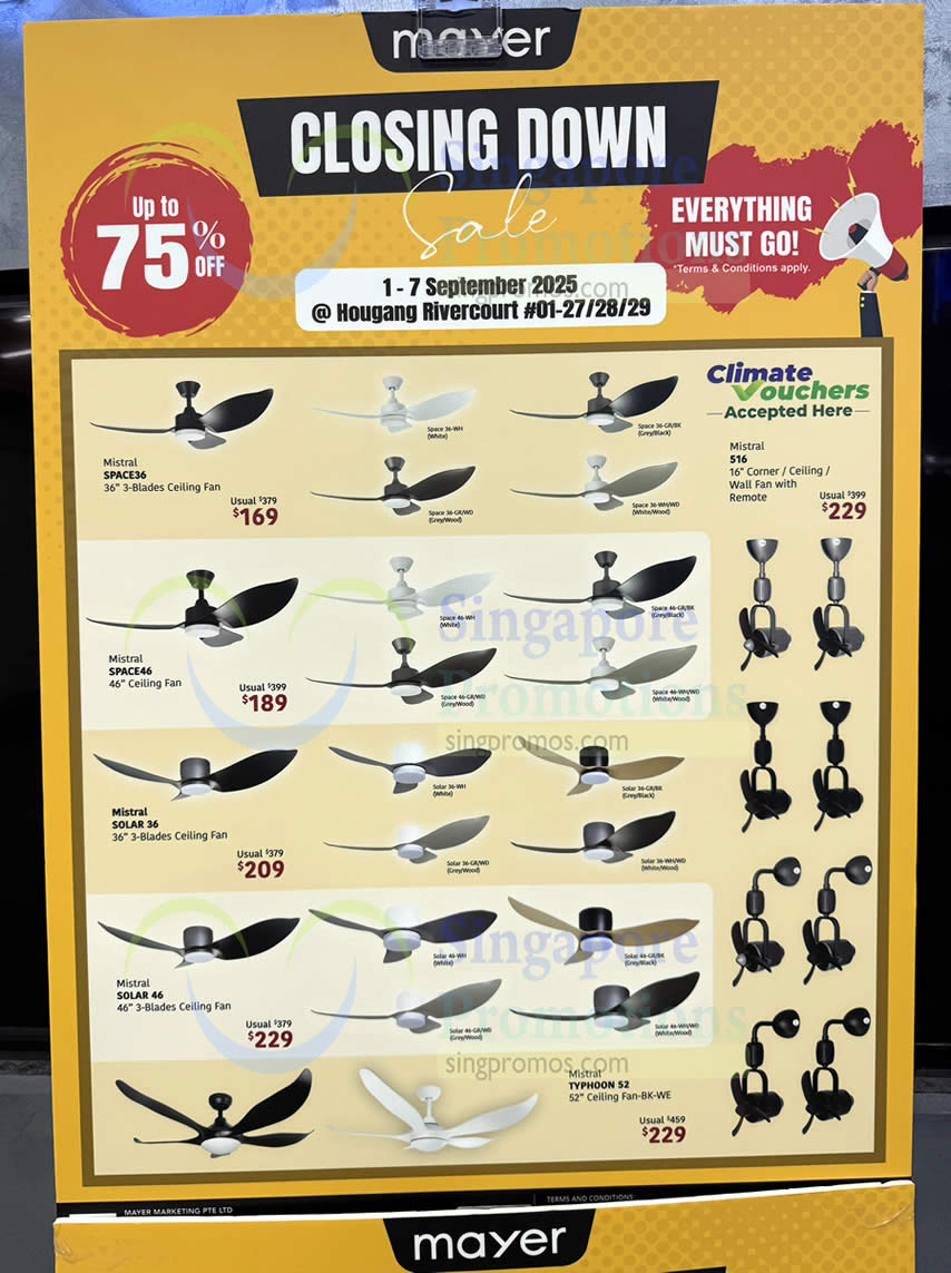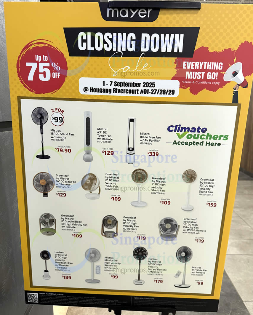 The Mayer Showroom @ Hougang RiverCourt is closing down, and shoppers can enjoy great discounts of up to 75% OFF on a wide range of Mayer and Mistral home appliances.