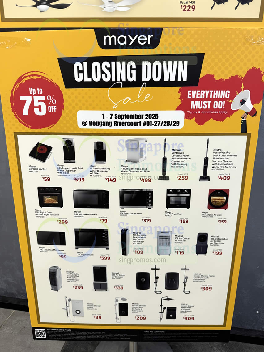 With the showroom closing its doors after 7 September 2025, this sale is the final chance for Singapore shoppers to enjoy Mayer and Mistral appliances at huge markdowns. Mark your calendar and head to Hougang RiverCourt for unbeatable deals.